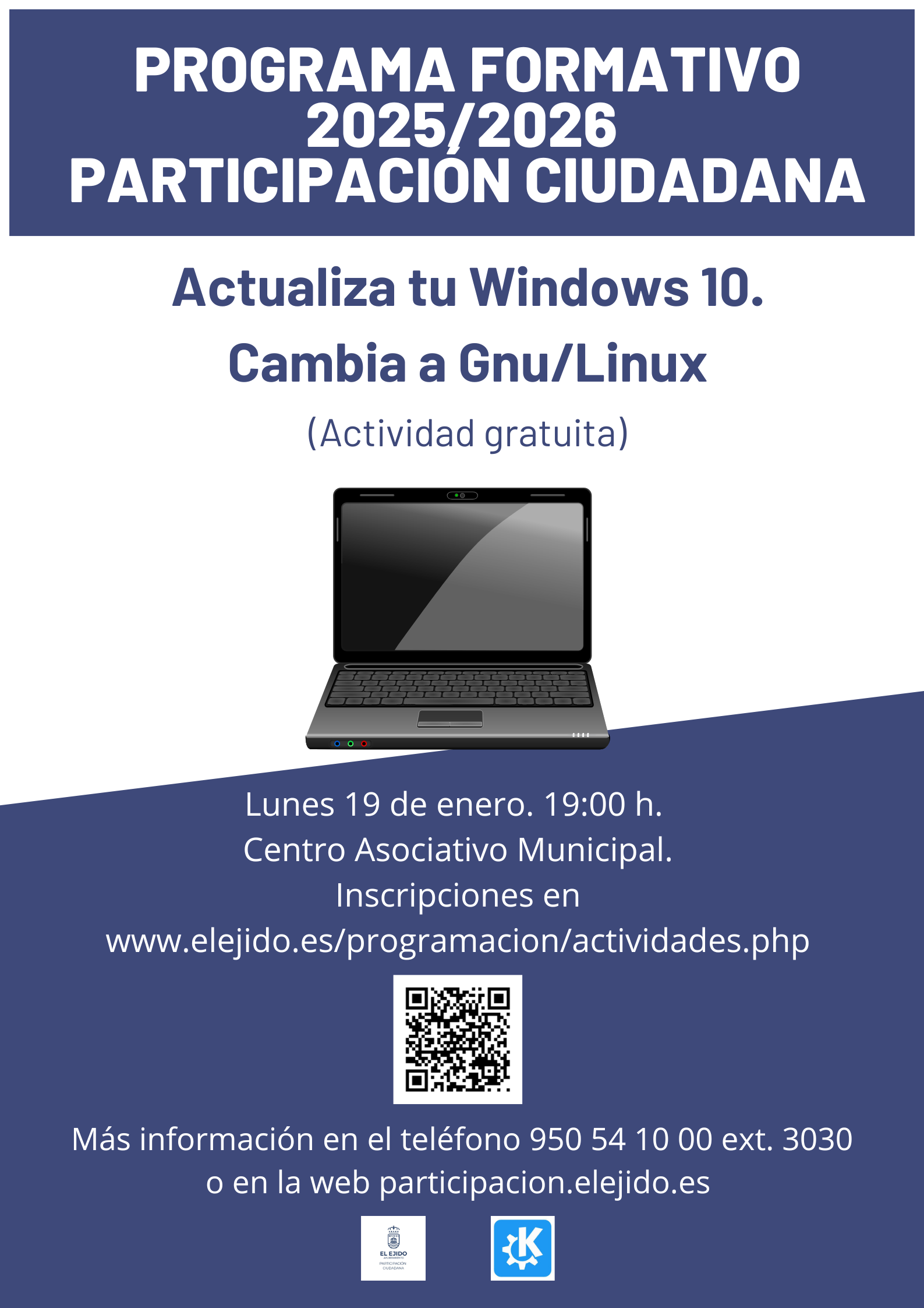 Actualiza tu Windows 10. Cambia a Gnu Linux. 5 enero, 20265 enero, 2026 by Participación El Ejido Calendar Añadir al Calendario Añadir a Timely Calendar Añadir a Google Agregar a Outlook Agregar a Apple Calendar Agregar a otro calendario Export to XML Cuando: 19 enero, 2026 a las 7:00 pm – 8:30 pm 2026-01-19T19:00:00+01:00 2026-01-19T20:30:00+01:00 Donde: Centro Asociativo Municipal Programa Formativo 2025/2026 http://www.elejido.es/actividades/programacion.php